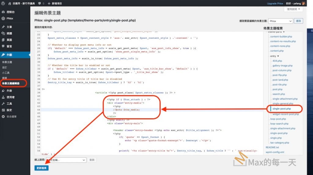 附註:這個方法在每一次升級創作者提供的新版本主題後,需要重新再操作一次,因為所有的php,css或其他檔案都會被覆蓋為新的版本。