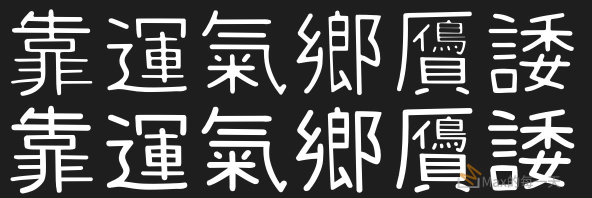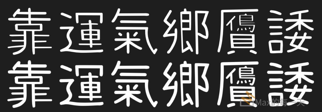 當然, 還是有些筆畫較細的字,在變更細時會變的「怪怪的」,像是: