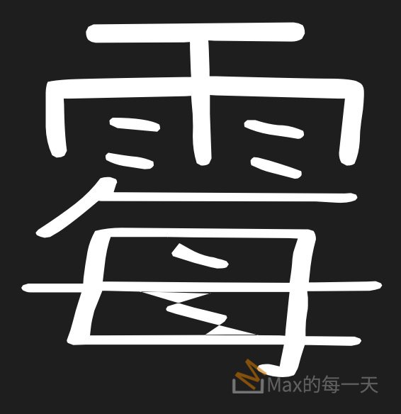 - 清楚的可以看到「米」、「木」、「土」或「日」使用 miter(0) 處理的情況下,在轉角的處理上,明顯讓字變粗,有書法渲染的感覺。