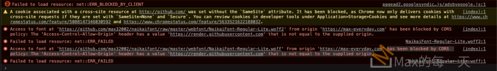 如果不符合 CORS policy 的話,會顯示下列訊息: