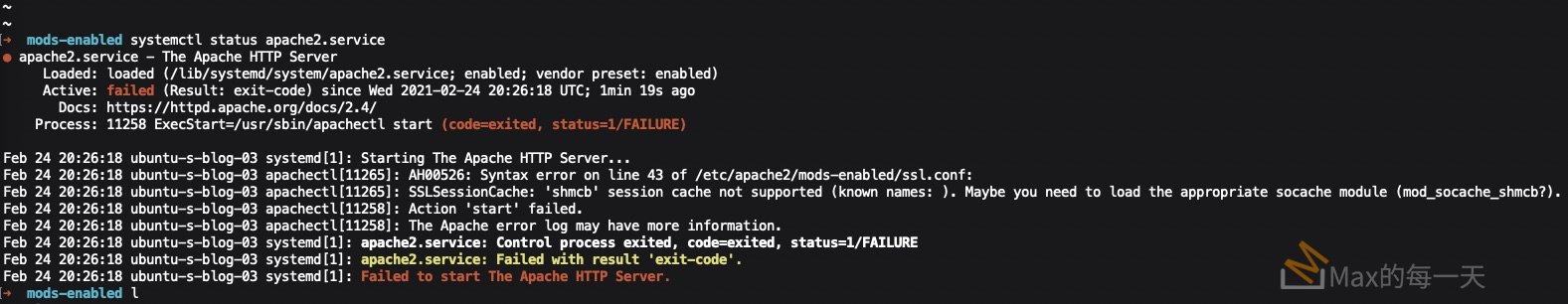 在使用 service apache2 start 啟用 web server 失敗,使用systemctl status apache2.service 看到顯示錯誤訊息:
