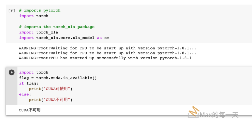 TPU 與 cuda 似乎是不同的世界,所以 CUDA 沒被啟用。