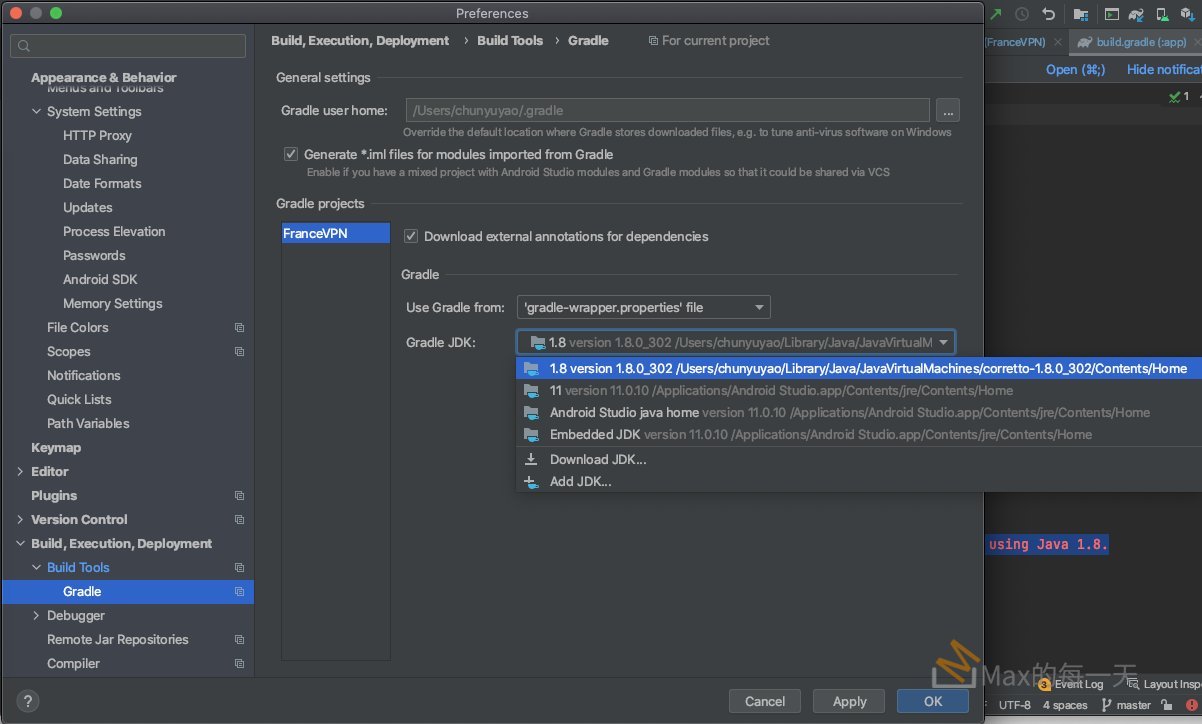 > Failed to apply plugin 'com.android.internal.application'. > Android Gradle plugin requires Java 11 to run. You are currently using Java 1.8. You can try some of the following options: - changing the IDE settings. - changing the JAVA_HOME environment variable. - changing `org.gradle.java.home` in `gradle.properties`. * Try: Run with --stacktrace option to get the stack trace. Run with --scan to get full insights.