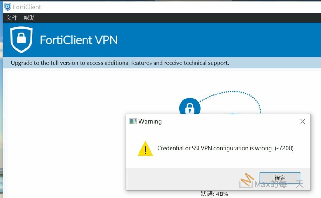 Windows 提示我要重開機, 用以套用新的設定值, 我重開後, FortiClient 就連不上VPN, 顯示錯誤訊: