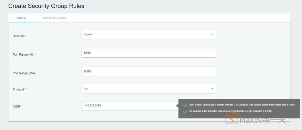 有一個必填的欄位, 限制不能輸入 0.0.0.0/0, 預設值是 10.0.0.0/24,