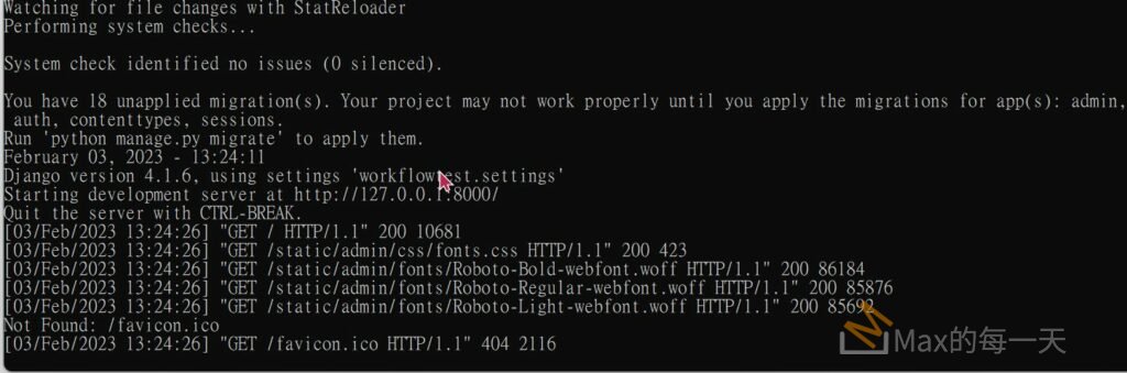 使用manage.py runserver 命令, 執行 Web 服務器, Linux/macOS 請執行: