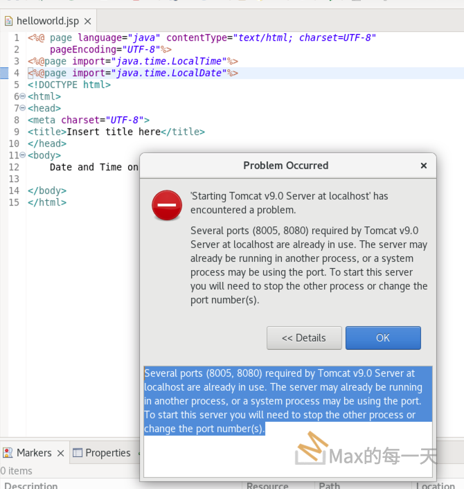 Several ports (8005, 8080) required by Tomcat Server at localhost are already in use