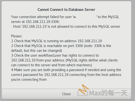 DROP USER 'user'@'192.168.211.23';不確定會不會是打錯密碼, 後來就是使用另外再開的帳號來登入, 所有的client side app 都正常了.