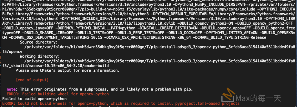 在 macOS 裡,安裝opencv-python 或 opencv-python-headless 時,一直裝不上,stackover 上找不到解法。