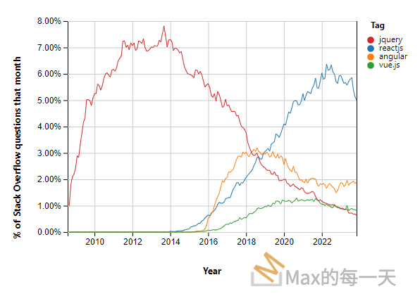 https://insights.stackoverflow.com/trends?tags=reactjs%2Cangular%2Cvue.js%2Cjquery