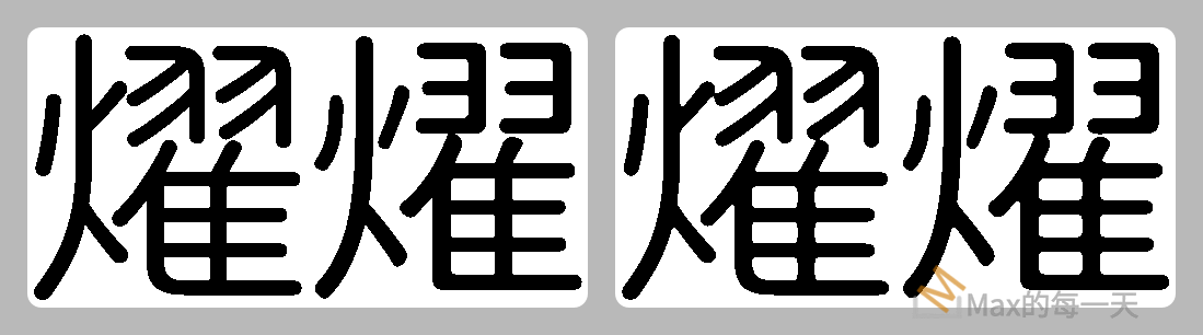在 zi2zi pytorch 裡, 有 20% 的機率會對訓練資料套用 blur 效果, 接著有 3種radius 分別是 [1, 1.5, 2], 有 1/15 機率讓學習資料套用到 blur + radius=2, 這個情況對資料有什麼影響? 用這張圖來說明: