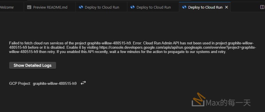這條錯誤訊息非常明確地指出了問題所在:您的 GCP 專案 graphite-willow-480515-h9 尚未啟用 Cloud Run Admin API。