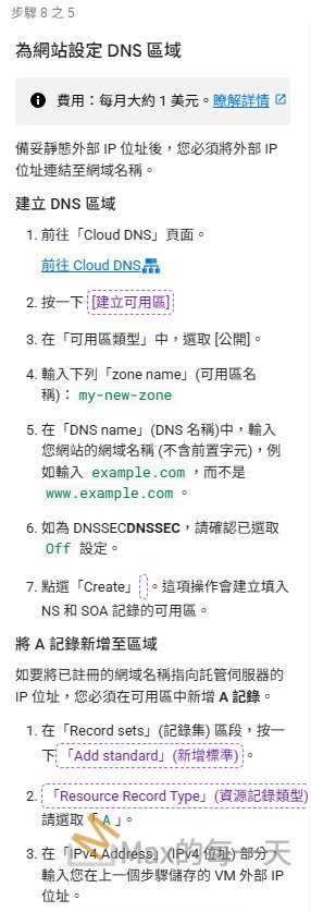 除了在實際的 domain name 供應商設定 a record, 還需要在 GCP 裡的 Cloud DNS 裡增加對映表.