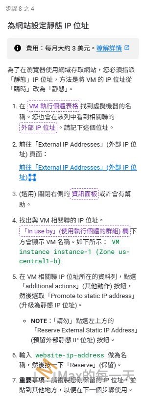 如果想了解如何在 GCP Console 中保留和釋放靜態外部 IP 位址,可以參考這個影片:Reserving and Releasing External Static IP Addresses in GCP using Console