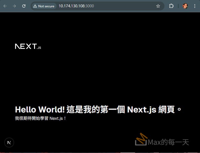 你應該就會看到一個網頁,上面顯示著你寫好的 “Hello World! 這是我的第一個 Next.js 網頁。” 訊息了。