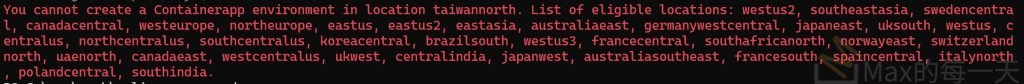 根據錯誤訊息,Taiwan North 目前還不支援 Container Apps Environment