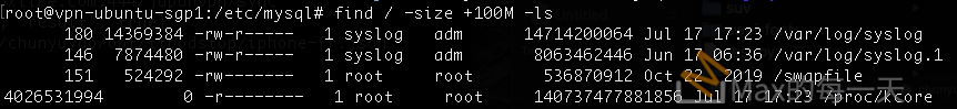 查出的結果是 syslog 檔案太大,造成要刪掉 syslog 的方法: