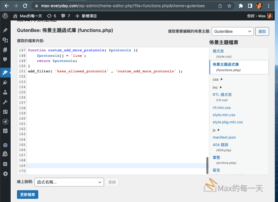 可以修改 wordpress theme 裡的 function.php, 加入下面的程式碼:
