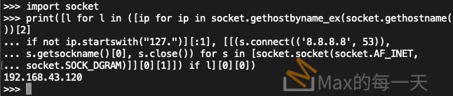 print([l for l in ([ip for ip in socket.gethostbyname_ex(socket.gethostname())[2]