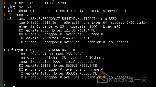 由於 ip v4 沒有功能, 造成 telent 指令會傳回錯誤訊息: